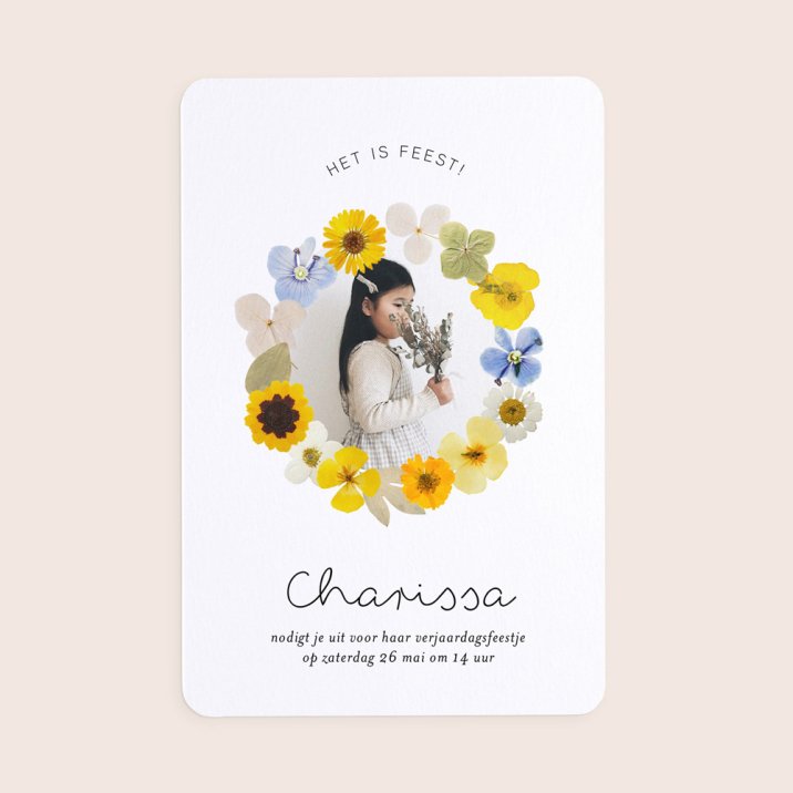 Staat je kleine boterbloem op het punt haar kaarsjes uit te blazen? Nodig haar vriendinnen uit om haar verjaardag te vieren met de Sunflower-kaart en de mooie, zonnige bloemenkroon.