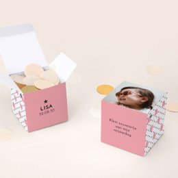 Personaliseer dit originele en exclusieve design met de naam van je kind, de gevierde leeftijd, de datum, plaats en tijd van het evenement. Er is ook een ruimte voorzien om een eigen uitnodigingstekst toe te voegen.