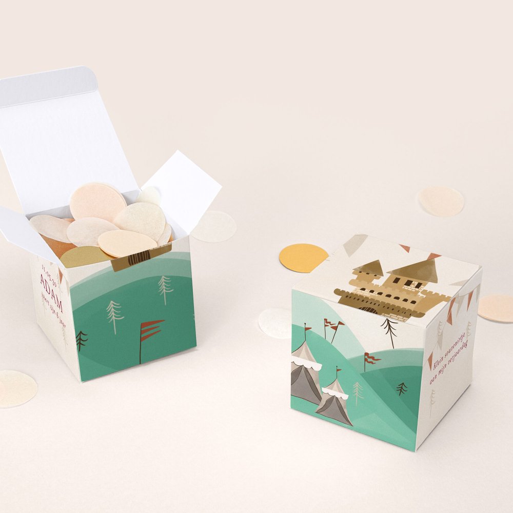 Het verrassingsdoosje is speciaal ontworpen en gemaakt om jullie mini gasten te te verrassen met een smakelijk traktatie! Personaliseer het doosje met een lief berichtje, foto of naam van je kind. Kies voor heerlijke suikerbonen (optioneel verkrijgbaar), ambachtelijk gemaakt in het zuiden van Frankrijk. Wij raden aan om 20 suikerbonen per doos toe te voegen (50 g).