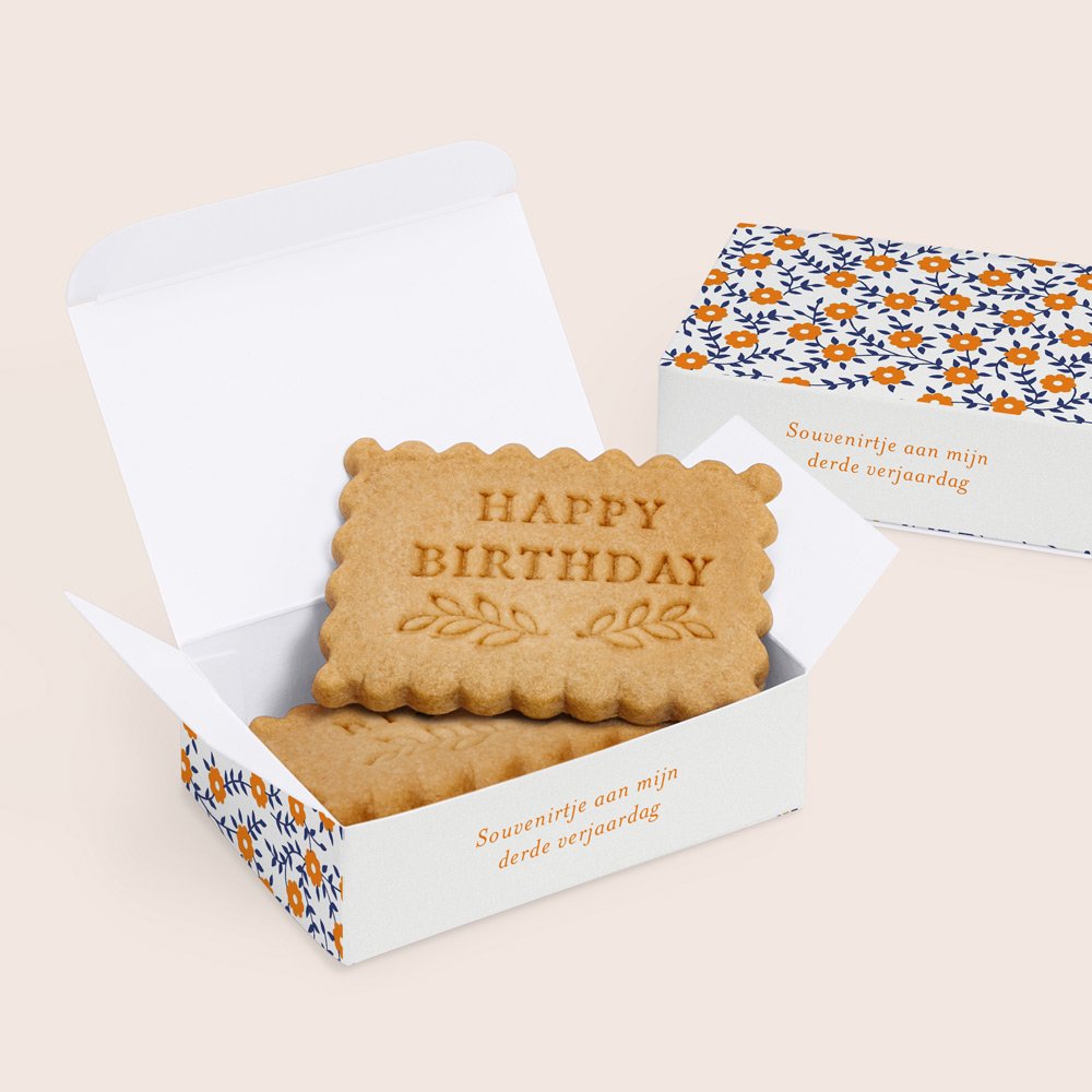 Het koekjesdoosje is speciaal ontworpen en gemaakt om jullie mini gasten te te verrassen met een smakelijk traktatie! Personaliseer het doosje met een lief berichtje, foto of naam van je kind. In 1 doosje kunnen 3 of 4 koekjes, afhangend van de dikte van het koekje.Vind hier het recept voor de koekjes, door onze chef Isa!
