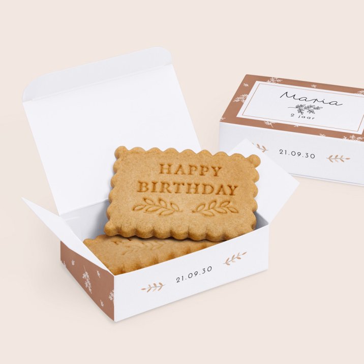 Het koekjesdoosje is speciaal ontworpen en gemaakt om jullie mini gasten te te verrassen met een smakelijk traktatie! Personaliseer het doosje met een lief berichtje, foto of naam van je kind. In 1 doosje kunnen 3 of 4 koekjes, afhangend van de dikte van het koekje.Vind hier het recept voor de koekjes, door onze chef Isa!