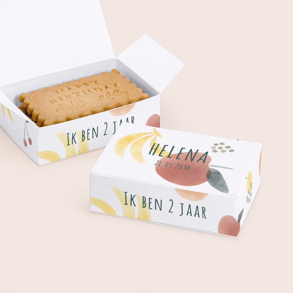 Het koekjesdoosje is speciaal ontworpen en gemaakt om jullie mini gasten te te verrassen met een smakelijk traktatie! Personaliseer het doosje met een lief berichtje, foto of naam van je kind. In 1 doosje kunnen 3 of 4 koekjes, afhangend van de dikte van het koekje.Vind hier het recept voor de koekjes, door onze chef Isa!