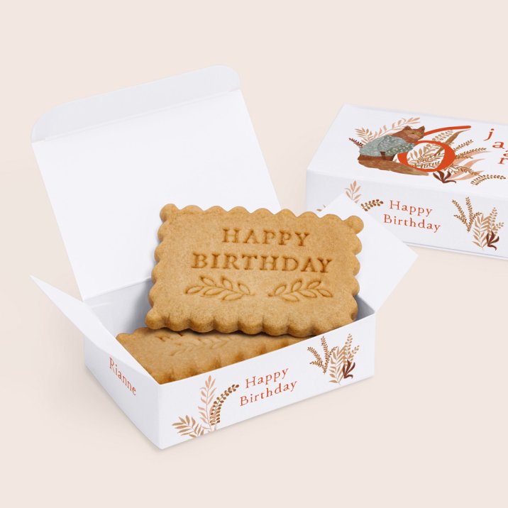 Het koekjesdoosje is speciaal ontworpen en gemaakt om jullie mini gasten te te verrassen met een smakelijk traktatie! Personaliseer het doosje met een lief berichtje, foto of naam van je kind. In 1 doosje kunnen 3 of 4 koekjes, afhangend van de dikte van het koekje.Vind hier het recept voor de koekjes, door onze chef Isa!