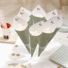 Confetti, bollen voor blaaspijp en feestartikelen voor een vrolijke sfeer, kleurpotloden voor een creatieve workshop, snoepjes (popcorns, marshmallows ...), minitraktaties ... er zijn veel mogelijkheden om je snoephoorntjes in te zetten tijdens het verjaardagsfeestje.