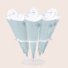 Confetti, bollen voor blaaspijp en feestartikelen voor een vrolijke sfeer, kleurpotloden voor een creatieve workshop, snoepjes (popcorns, marshmallows ...), minitraktaties ... er zijn veel mogelijkheden om je snoephoorntjes in te zetten tijdens het verjaardagsfeestje.