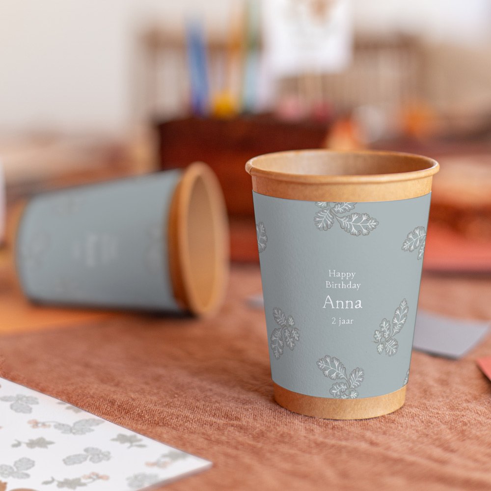 Deze bekers van recyclebare vezels worden geleverd met zelfklevende etiketten en zijn te personaliseren met de naam van je kind, de gevierde leeftijd en de datum van het evenement.