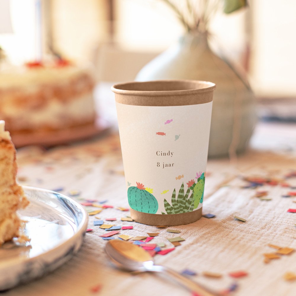 Deze bekers van recyclebare vezels worden geleverd met zelfklevende etiketten en zijn te personaliseren met de naam van je kind, de gevierde leeftijd en de datum van het evenement.