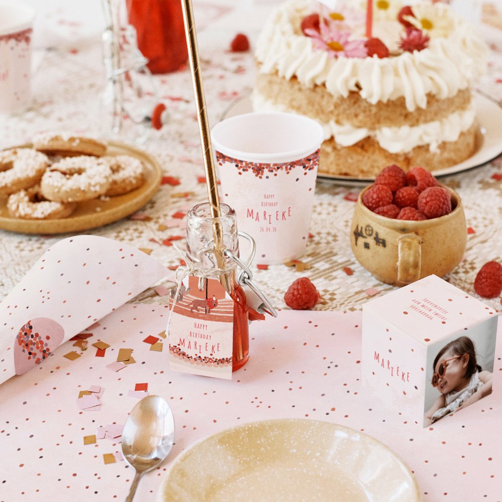 Deze bekers van recyclebare vezels worden geleverd met zelfklevende etiketten en zijn te personaliseren met de naam van je kind, de gevierde leeftijd en de datum van het evenement.