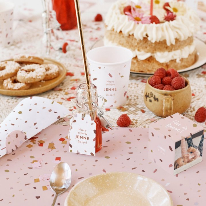 Geef de mini gasten op het verjaardagsfeestje van je kind een lekkere dorstlesser met onze Terrazzo bekers.