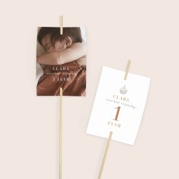 Deze slinger van 16 dubbelzijdige wimpels, passend bij de uitnodigingskaart die je hebt gekozen, is te personaliseren met de naam van je kind, de datum van zijn/haar verjaardag, foto en een eigen tekst.