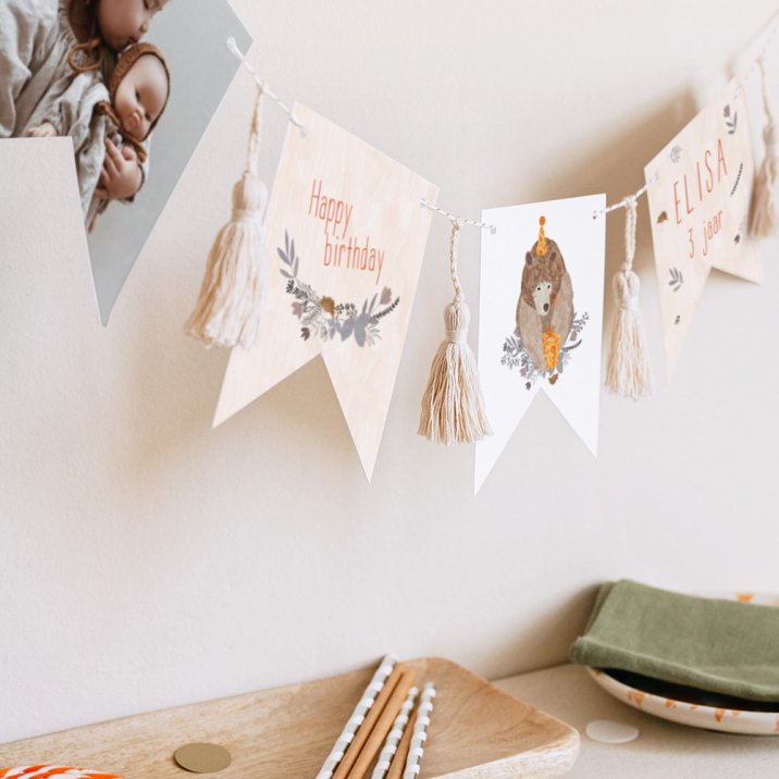 Fleur de verjaardag van je kleine schat op door je huis te versieren met Lovely bear slingers.