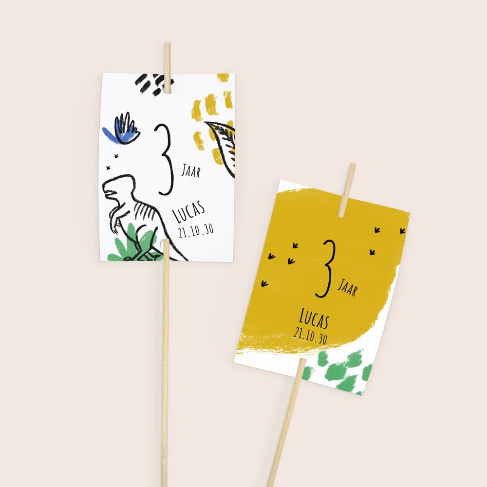 Kies de taarttopper in dezelfde stijl als de verjaardagsuitnodiging. De topper is personaliseerbaar, zowel op de voor- als achterkant. Voeg bijvoorbeeld de naam van je kind en de datum van het kinderfeestje toe. Versier de verjaardagstaart of andere lekkernijen zoals muffins en cupcakes en verras je kind en zijn/haar mini gasten!