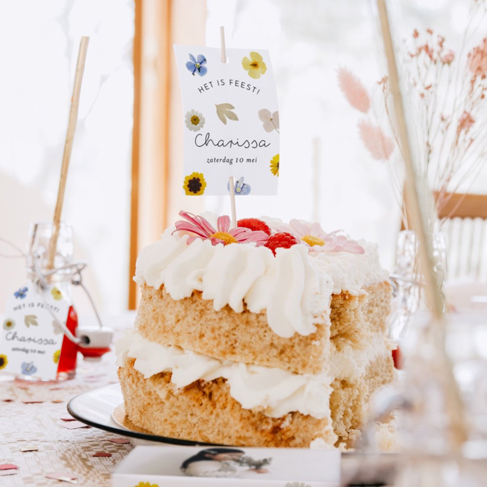 Kies de taarttopper in dezelfde stijl als de verjaardagsuitnodiging. De topper is personaliseerbaar, zowel op de voor- als achterkant. Voeg bijvoorbeeld de naam van je kind en de datum van het kinderfeestje toe. Versier de verjaardagstaart of andere lekkernijen zoals muffins en cupcakes en verras je kind en zijn/haar mini gasten!