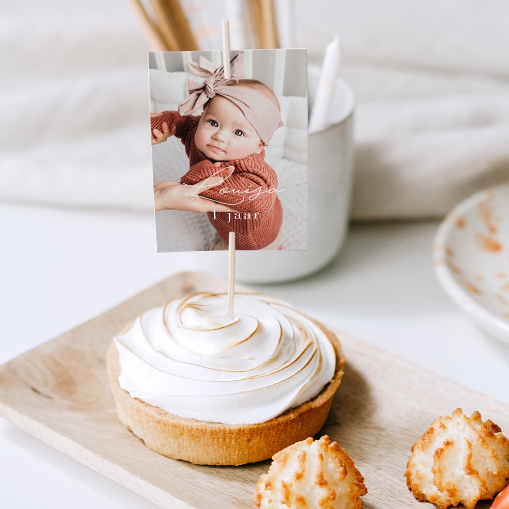 Kies de taarttopper in dezelfde stijl als de verjaardagsuitnodiging. De topper is personaliseerbaar, zowel op de voor- als achterkant. Voeg bijvoorbeeld de naam van je kind en de datum van het kinderfeestje toe. Versier de verjaardagstaart of andere lekkernijen zoals muffins en cupcakes en verras je kind en zijn/haar mini gasten!