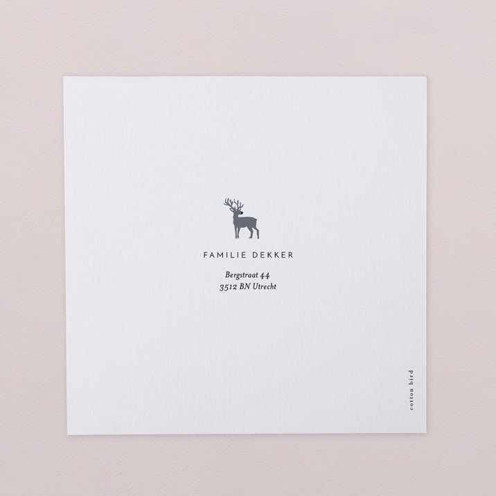 Deze kerstkaart is een dubbele kaart met een vouwlijn door het midden. Je persoonlijke bericht komt in de binnenkant van de kaart.