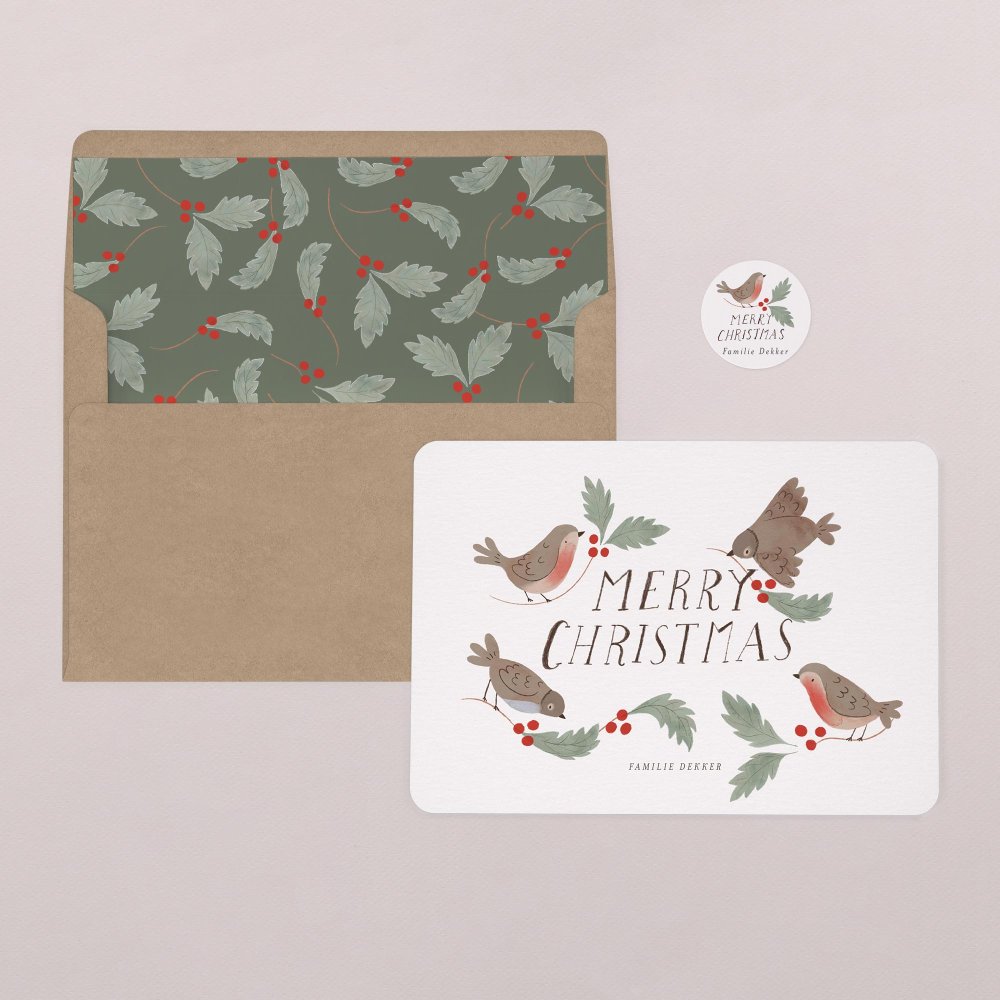 De kaart wordt hier weergegeven met binnenkant envelop en bijpassende sticker (optioneel, extra te bestellen)