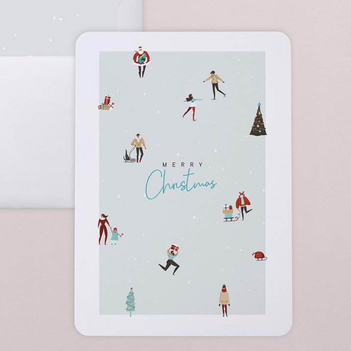 Deze kerstkaart met ronde hoeken is een enkele kaart, op beide kanten te bewerken.