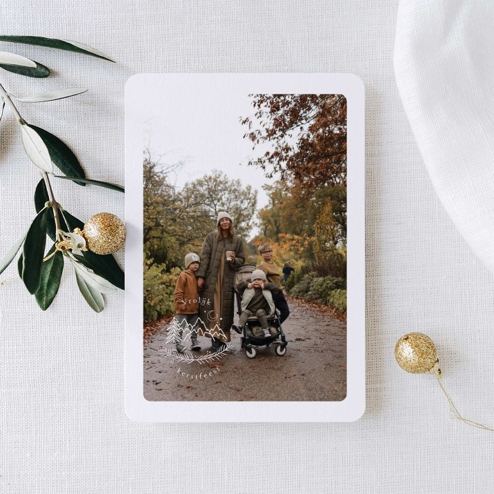 Deze kerstkaart met ronde hoeken is een enkele kaart, op beide kanten te bewerken.