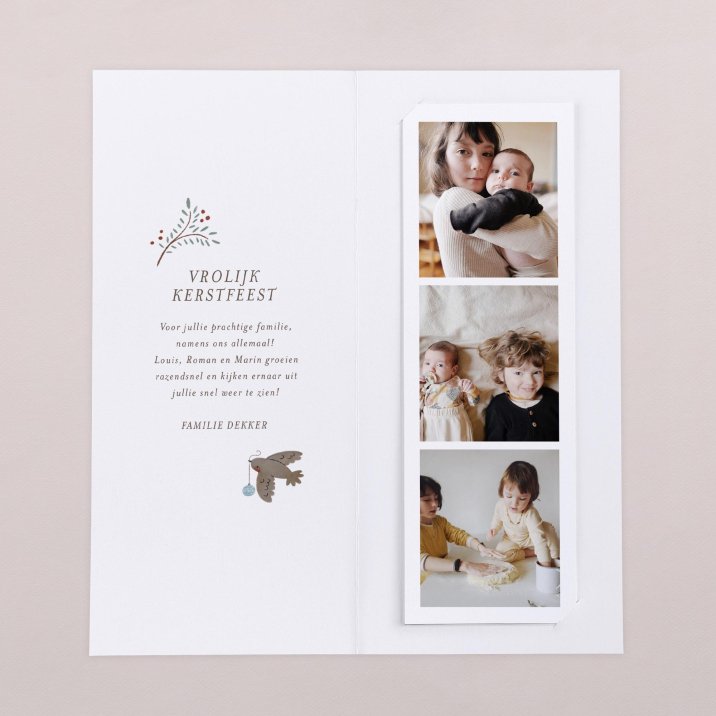 Deze kerstkaart bestaat uit een dubbele kaart en een aparte fotostrip.