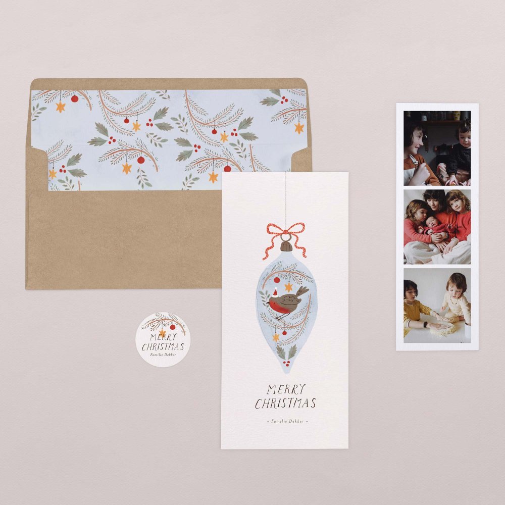 Deze kerstkaart bestaat uit een dubbele kaart en een aparte fotostrip.