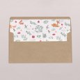 Vossen, eekhoorns en vogels zijn afgebeeld op de wenskaart Winter forest. Een tafereel met de sfeer van een betoverd bos, om uw kerst- en nieuwjaarswensen met tederheid over te brengen. Kleuren: beige, groen, rood, bruin, grijs, oranje Thema: origineel, dieren, bos Illustraties: vos, eekhoorn, vogel, boom, bos, cadeau, zuurstok