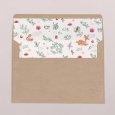 Vossen, eekhoorns en vogels zijn afgebeeld op de wenskaart Winter forest. Een tafereel met de sfeer van een betoverd bos, om uw kerst- en nieuwjaarswensen met tederheid over te brengen. Kleuren: beige, groen, rood, bruin, grijs, oranje Thema: origineel, dieren, bos Illustraties: vos, eekhoorn, vogel, boom, bos, cadeau, zuurstok