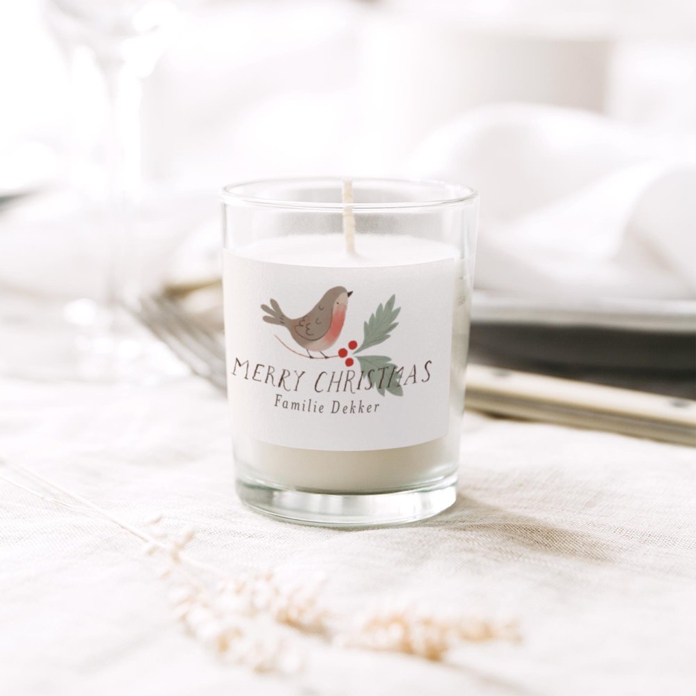 Deze kleine kaars, gemaakt in Frankrijk, wordt geleverd met een zelfklevend etiket dat je zelf kunt personaliseren en aanbrengen.