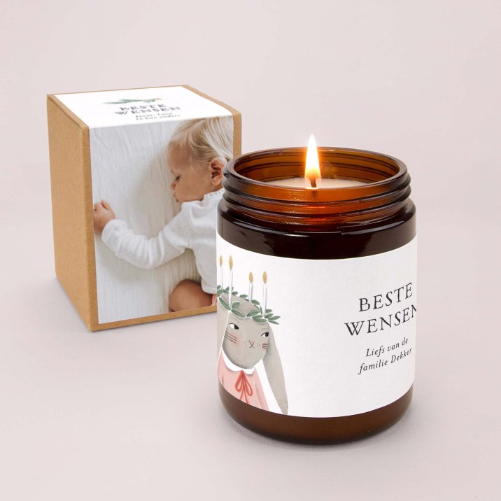 De apothekerskaars wordt geleverd in een prachtig kraftdoosje, samen met twee zelfklevende etiketten die je zelf kunt bevestigen op de kaars en het doosje. Het is een leuk en persoonlijk cadeautje met je eigen foto en berichtje.