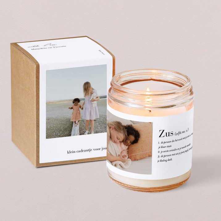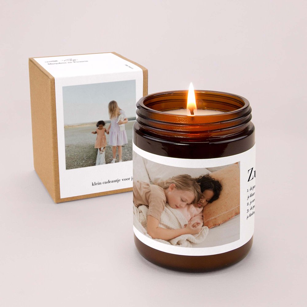 De apothekerskaars wordt geleverd in een prachtig kraftdoosje, samen met twee zelfklevende etiketten die je zelf kunt bevestigen op de kaars en het doosje. Het is een leuk en persoonlijk cadeautje met je eigen foto en berichtje.